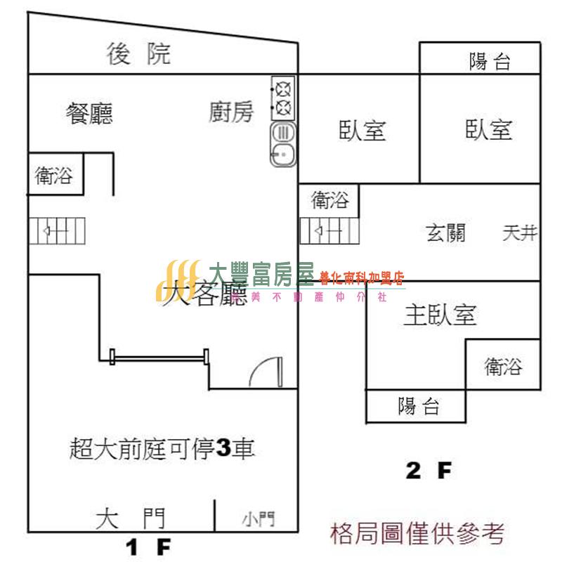 *1F可隔孝親房,大庭院可停3車,大空間好規劃。